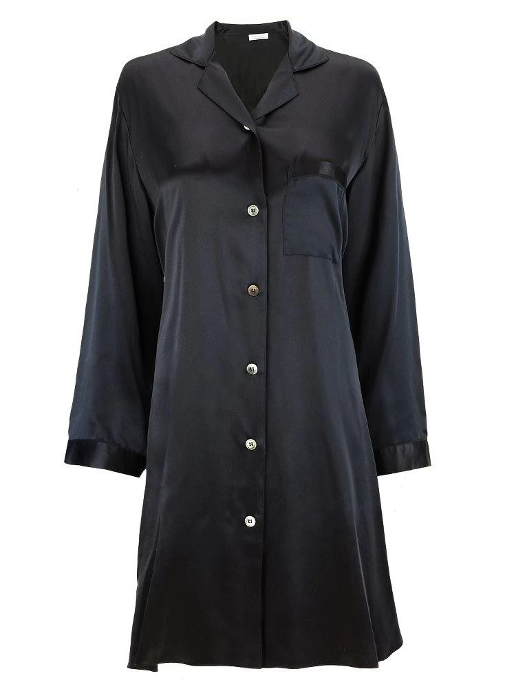 Bequemes Seiden- Sleepshirt KLASSIK mit langen Ärmeln. Dieses gemütliche Langarm- Nachthemd im Stil eines Herren- Oberhemdes ist aus hochwertigem 19 momme Seidensatin gefertigt. Der sehr bequeme Schnitt und die langen Ärmel machen dieses Seiden- Sleepshirt zu einem schicken und gemütlichen Nachthemd für das ganze Jahr. Die Länge ist ca. 95 cm.