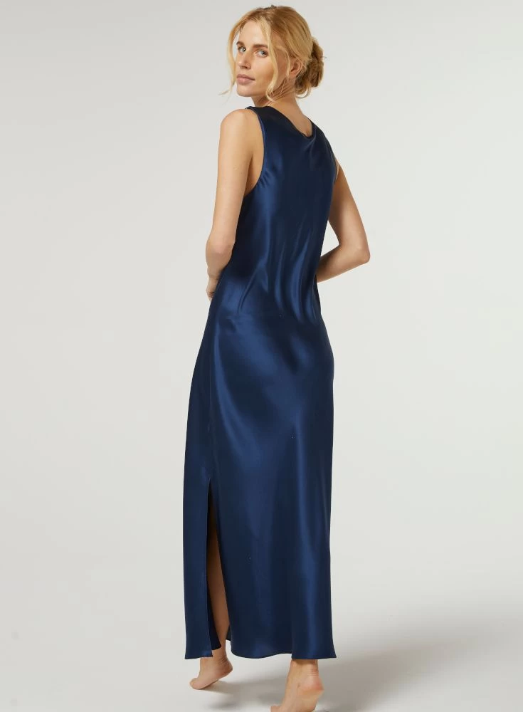 Das Nachtkleid mit einer Gesamtlänge von ca. 135 cm bietet durch das hochwertige Material einen femininen und edlen Look. Dieses Modell ist in den Größen S bis XXL erhältlich (italienische Herstellergrößen), der Saum ist unten seitlich geschlitzt. Die Verarbeitung ist fein und daher kann es auch als Loungewear oder Seidenkleid getragen werden. Dieses Nachtkleid ist ungefüttert.