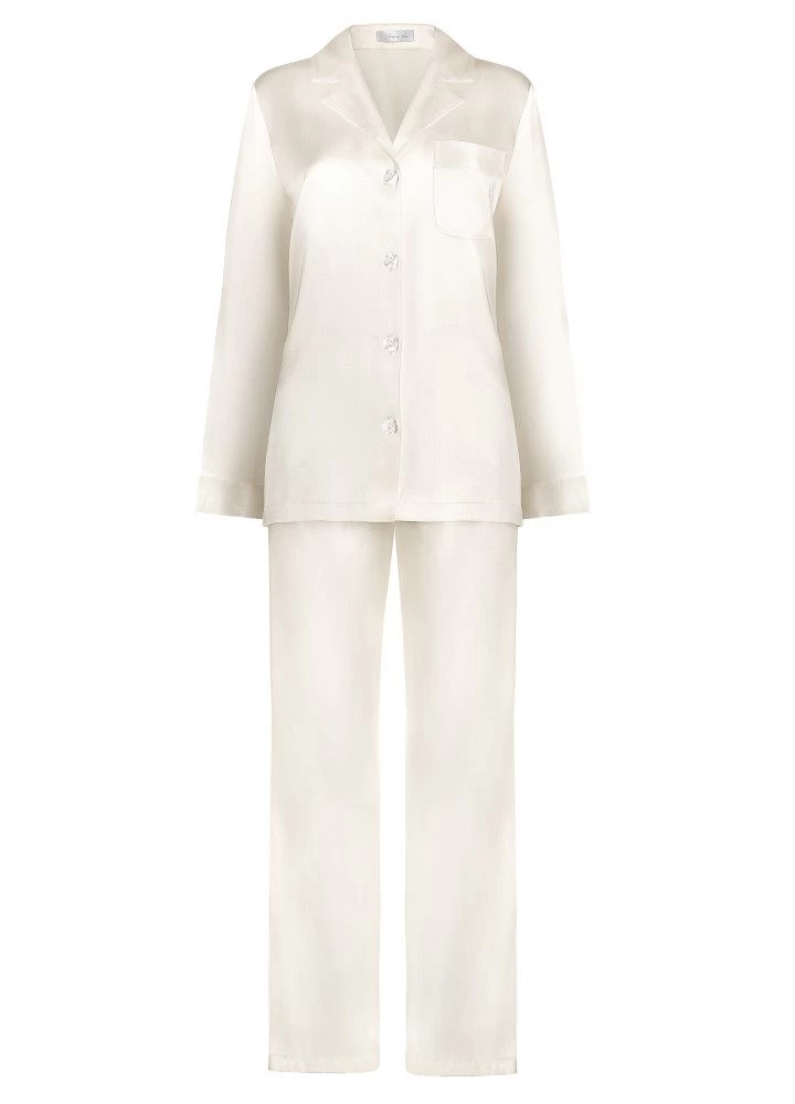 Dieser luxuriöse Seiden-Schlafanzug ist aus Seidensatin aus reiner Seide und hat einen geradlinig-klassischen Schnitt. Die feine Seide fällt elegant und fließend und durch ihre temperaturausgleichenden Eigenschaften ist dieser Schlafanzug sehr angenehm und hautsympathisch. Alle Abschlüsse und Säume sind besonders fein verarbeitet und der elegante Schlafanzug ist daher entweder zum Schlafen oder als gemütliche Homewear tragbar.