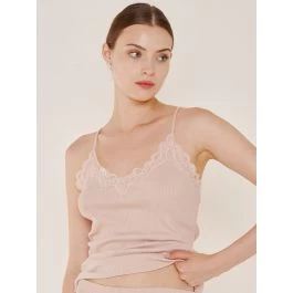Die Hochwertigkeit des Stoffes (70% Seide, 30% Baumwolle) wird durch den zeitlosen Schnitt und die Verzierung mit floraler Wäschespitze (100% Polyester) unterstrichen. Das Unterhemd hat dünne Träger und eine unkomplizierte Passform. Es kann als Oberbekleidungsteil, Unterwäsche oder auch als Nachtwäsche und Homewear getragen werden.