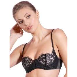 Der verführerische Black Swan Bügel Balconette BH von Prelude Milano ist Spitzenwäsche Made in Europe. Das edle Teil besteht aus floraler Eye-Lash Spitze und glänzendem Stretchsatin. Hinten, sowie in den Körbchen ist der schöne BH mit dem gemütlichen Satin ausgelegt, welcher angenehm auf der Haut liegt.