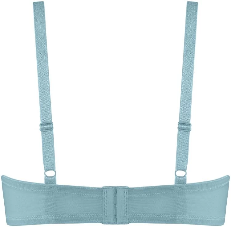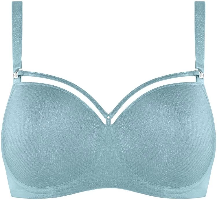 Der BH hat ausgeformte, gefütterte Halb Schalen-Cups. Die Schalen mit Bügel sind auf der Außenseite hellblau-silbern glitzernd und innen hellblau abgefüttert. Die Seitenteile des BHs bestehen aus elastischem Jersey und auf der Rückseite wird der BH mit einem doppelten Häkchenverschluss (dreifach verstellbar) geschlossen. Die Träger sind breiter geschnitten, elastisch und in der Länge verstellbar und über den Cups hat der BH die für die Marke typischen Bändchen.