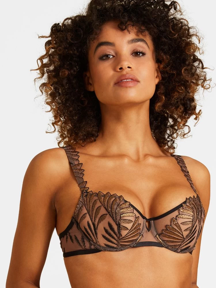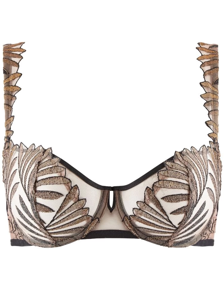 Der hochwertige Halbschalen BH SENSORY ILLUSION mit goldener Rankenstickerei von Aubade ist luxuriöse Unterwäsche aus Frankreich. Die Sensory Illusion Kollektion von Aubade entstand in der Zusammenarbeit mit der niederländischen Modedesignerin Iris Van Herpen.