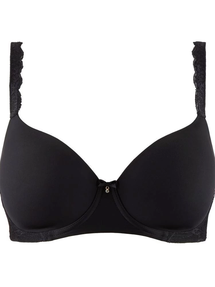Der Bügel BH hat leicht gepaddete 3/4 Cups mit Bügel, elastische verstellbare Träger und ist in vielen Größen erhältlich. Er wird mit einem dreifach verstellbaren Häkchenverschluss geschlossen. Die leicht wattierte Dreiviertelschale sorgt für ein angenehmes Tragegefühl und bringt die Brust schön in Form. Vorne zwischen der Brust ziert eine kleine Schleife mit Glitzersteinchen das Dekolleté.