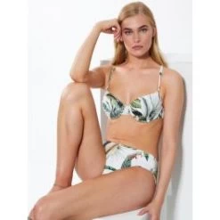 Dieser modische Bikini von Fürstenberg überzeugt durch seinen exklusiven Druck mit Blätter-Muster und die ausgefallene Farbstellung in weiß und Grüntönen.