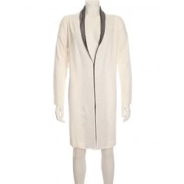 Die Strickjacke Syngonium hat einen geraden Schnitt und lange Ärmel. Das Revers ist mit kontrastfarbenem, weichem Satin eingefasst. Dieser Cardigan hat eine Gesamtlänge von ca. 100 cm.