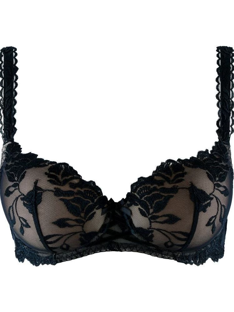 Der Halbschale BH hat leicht gepaddete Cups mit Bügel, elastische verstellbare Träger und ist in vielen Größen erhältlich. Er ist für optimalen Komfort und Halt auf der Rückseite mit einem breiteren Rückenstück gestaltet und wird mit einem dreifach verstellbaren Häkchenverschluss geschlossen
