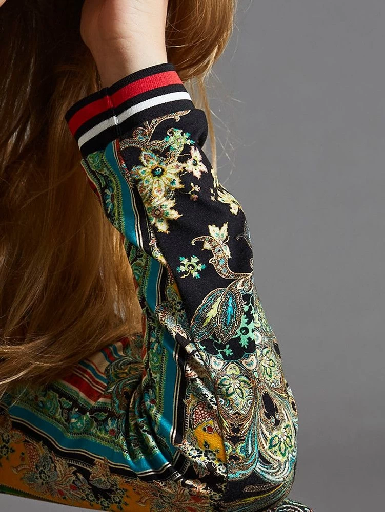 Für diese Kollektion wurde ein Jerseystoff mit einem besonders hochwertigen und ausgefallenen Druck verwendet – typisch für den Anspruch der Marke Fürstenberg. Mit dem gleichen Design sind bei uns noch weitere Artikel erhältlich.
