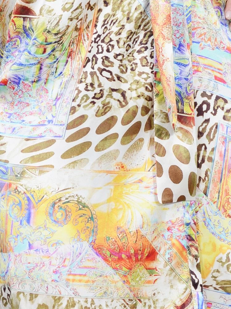 Auf einen sand-gold farbenen Hintergrund sind bunte Muster, gemischt mit Leopard-Print Motiven gedruckt. Das raffinierte Muster ist besonders ausdrucksstark und typisch für die Marke Eva B. Bitzer.