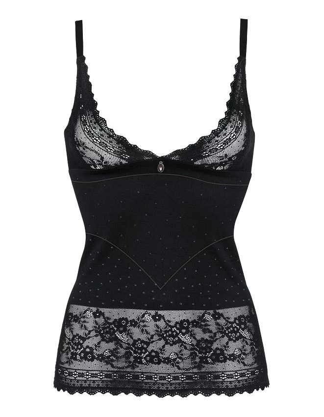 Das Lace Sensation Shirt 02 hat elastische Abschlüsse aus Spitze und längenverstellbare Träger. Seitlich ist dieses Top nahtlos gearbeitet. Durch eine neue Technologie geht der Stoff nahtlos in den elastischen Spitzensaum über. Die Cups sind seitlich verstärkt für einen Push-Up Effekt ohne Kissen. Die Kollektion ist in den Größen 38 bis 42 erhältlich.