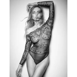 Der Spitzenbody Coeur von Cadolle ist ein eleganter Hauch von Nichts… Der Langarm Body besteht aus exquisiter Blumenspitze und feinem Pünktchen Tüll. Der Body ist ungefüttert und daher transparent. Er hat lange Ärmel, ein platziertes Herzmuster im Decolleté, einen weiten Carmenausschnitt und wird im Schritt mit Druckknöpfchen geschlossen.
