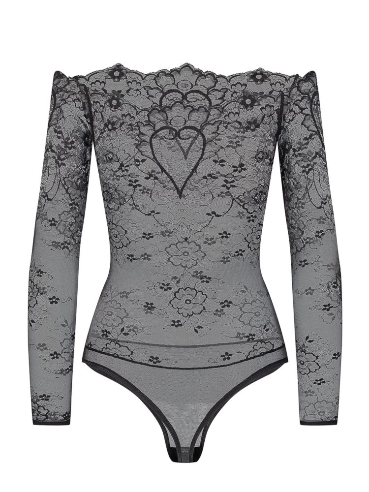 Langarm Body Coeur aus Spitze schwarz von Cadolle