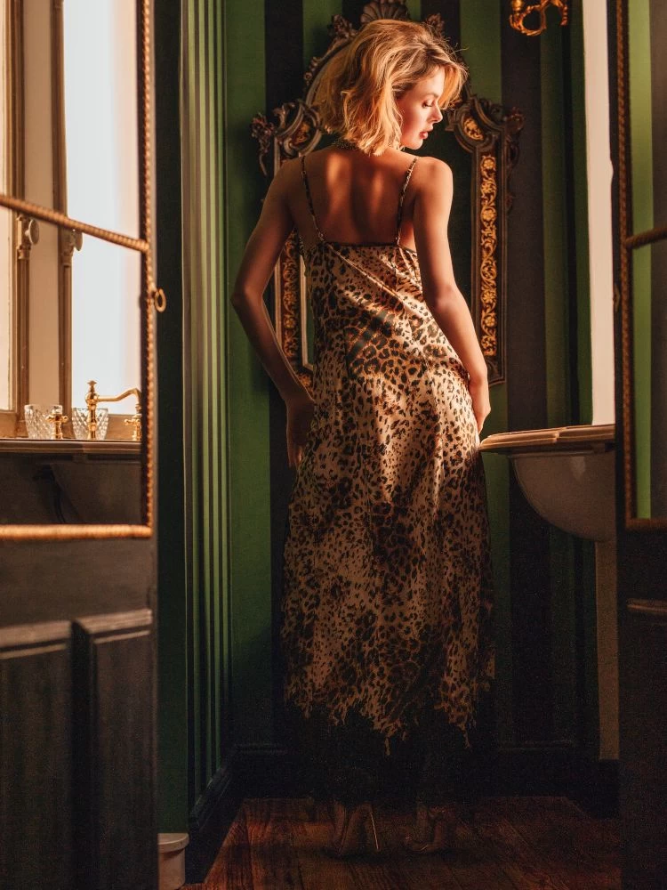 Langes Seidennegligé mit Spitze Puma von Marjolaine