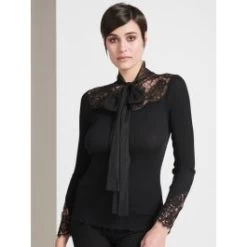 Merinowolle-Seide Langarm-Shirt mit Schleife schwarz von Oscalito