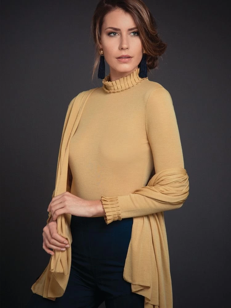 Das Merino Wolle-Seide Tuch von Artimaglia ist in Einheitsgröße ca. 75 x 185 cm erhältlich. Aus dieser Kollektion sind verschiedene Ergänzungsteile separat erhältlich.