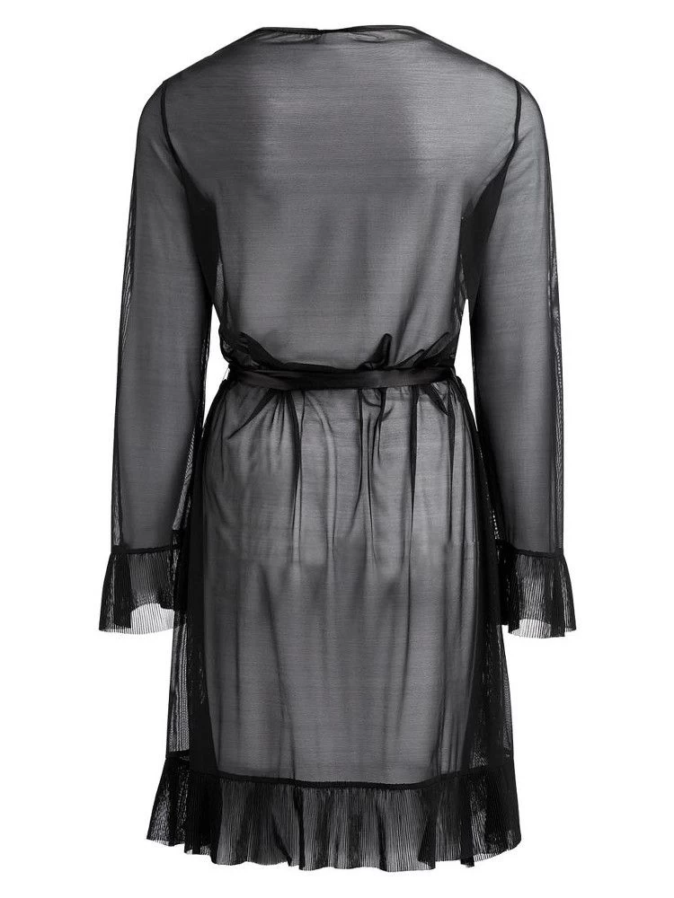 Dieser verführerisch leichte Morgenmantel ist in den Größen XXS (34) bis XXL (46) in der Farbe schwarz erhältlich.