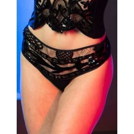 Der Paillettenslip Noyon aus der limitierten RC Private Collection „Notre Dame“ von RCrescentini besteht aus elastischer, schwarzer Tüllspitze mit Paillettenverzierung. Der Slip in Brasiliana Form besteht aus Tüllspitze mit Satindetails und ist transparent.