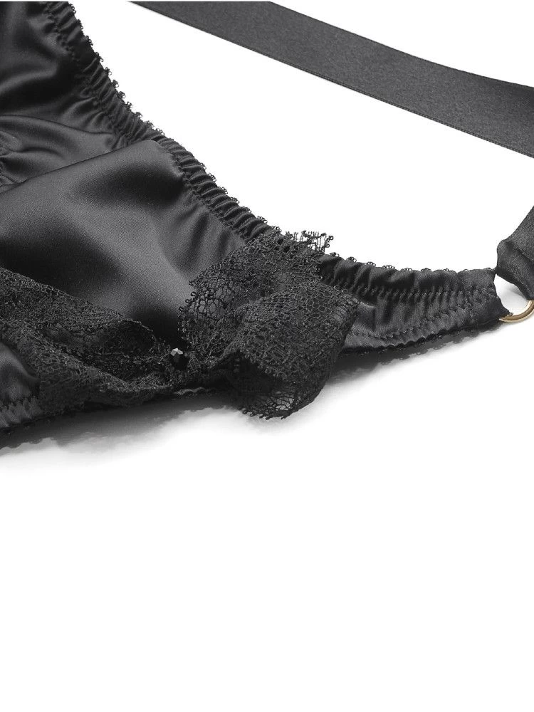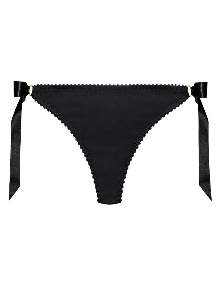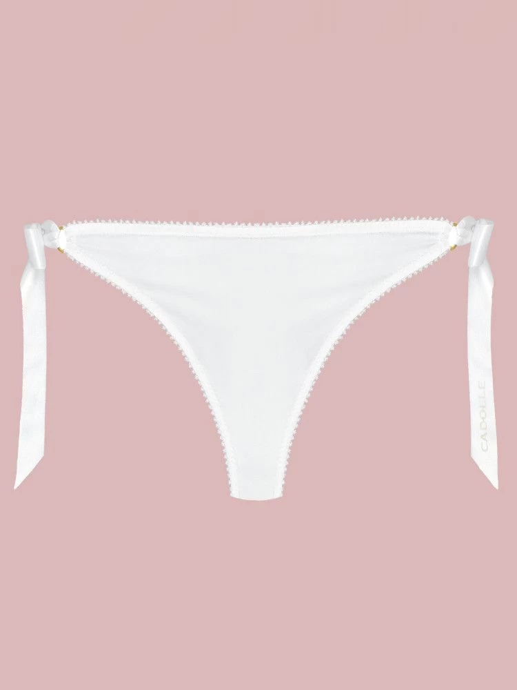 Der Satinslip Geisha Culotte von Cadolle ist luxuriös und mit dem gewissen Etwas… Der Slip im knappen Brasiliana Style besteht aus elastischem, glänzendem Satin wird seitlich mit breiten Satin-Bändern gebunden. Der Culotte Slip hat auf der Rückseite eine Schleife mit Schmuck-Kristall und einen Innenzwickel aus Baumwolljersey.