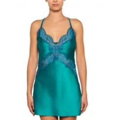 Das Negligé Adriana ist eine luxuriöse Seidenwäsche der französischen Edel-Dessous Marke Millesia. Das seidene Nachthemd ist auf beiden Seiten geschlitzt und vorne und hinten reichlich mit weicher Wäschespitze verziert. Die Träger sind in der Länge verstellbar und im Rücken zusammengefasst – so können die Träger nicht von der Schulter rutschen.