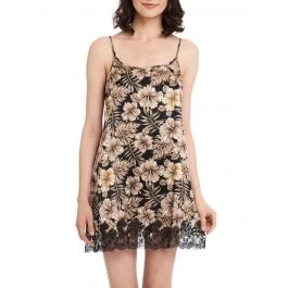 Dieses Modell in Schwarz mit Blumendruck in schoko und gold-bronze ist in den Größen 36 bis 46 (deutsche Größen) erhältlich. Das Neglige Joanna hat verstellbare Spaghettiträger und seitliche Abnäher an der Brust.