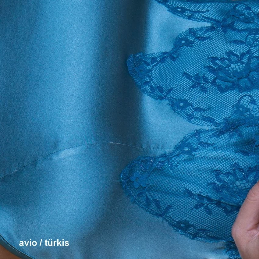 Dieser Slip ist in modischem türkis-blau, cremigem elfenbein-weiß oder schwarz in den folgenden Größen erhältlich: