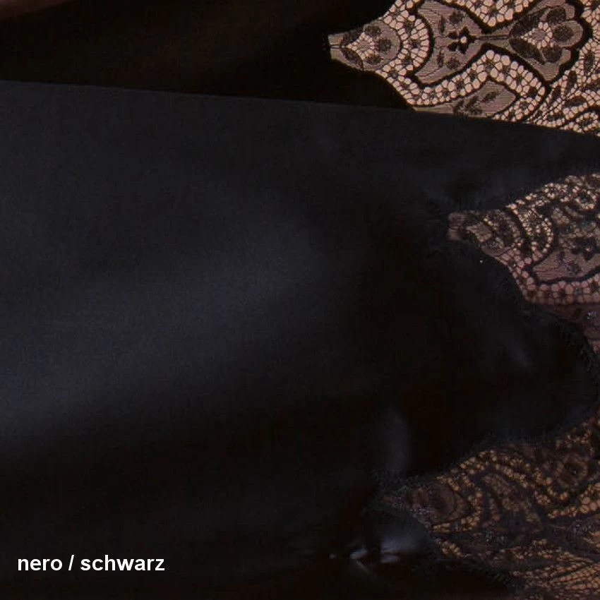Der String Rosalie von Cotton Club ist Seidenwäsche der Luxus- Klasse. Das edle Teil besteht aus glänzendem Seiden-Stretchsatin und exquisiter Eye-Lash Spitze. Der Seidenteil dieses Strings besteht dabei aus elastischer Seide mit Elasthananteil, die Spitze ist aus Polyamid gefertigt. Der String aus der Kollektion „The Templar Treasure“ ist im vorderen Teil teiltransparent aus glänzendem Seidensatin gefertigt. Seitlich und auf der Rückseite besteht er zum größten Teil aus Spitze. Die Beinausschnitte und der obere Bund sind mit Gummizugbündchen versehen und der String hat einen Innenzwickel aus Baumwolljersey.