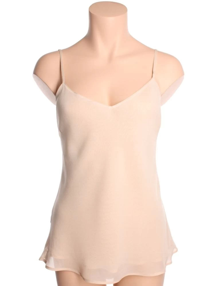 Das Seidentop Fidji Mousselin der französischen Edel-Marke Marjolaine ist aus feinem Seidemousselin (100% Seide) gefertigt. Das gerade geschnittene Seidentop hat einen leicht V-förmigen Ausschnitt. Die feinen Spaghetti-Träger sind hinten verstellbar.