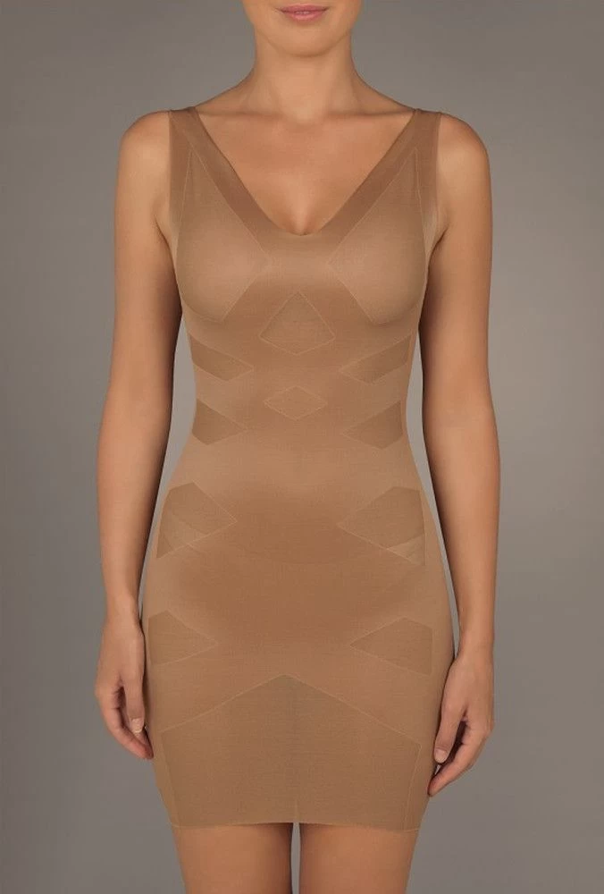 Das Shapewear Kleid Clotilde 69 von Pain de Sucre Suggest ist ein schickes Unterkleid mit figur formendem Effekt. Dieses edle Shaping-Kleid ist mit seinem Muster aus weicheren und festern Bereichen optisch so attraktiv, dass es sogar als sexy Minikleid getragen werden könnte… Das Shapewear Kleid besteht aus elastischer Microfaser, die wenig knittert. Es hat breite Träger und Laser-Cut Kanten. Dieses Unterkleid ist ohne Verschluss gearbeitet und zum Anziehen steigt man mit den Füßen zuerst ein.