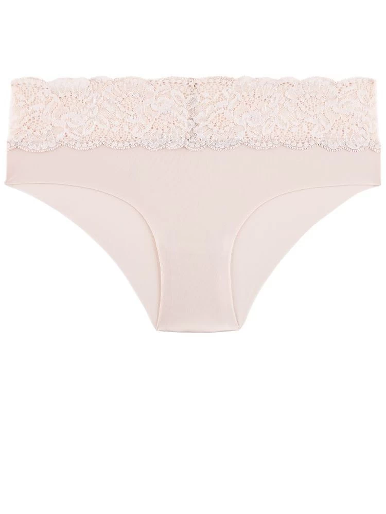 Der Slip in Boy Short Form hat Laser Cut Kanten und seitlich geklebte Nähte, für einen besonders flachen Look. Der Bund ist mit Spitze verziert und der Slip hat einen Innenzwickel aus Baumwolljersey.