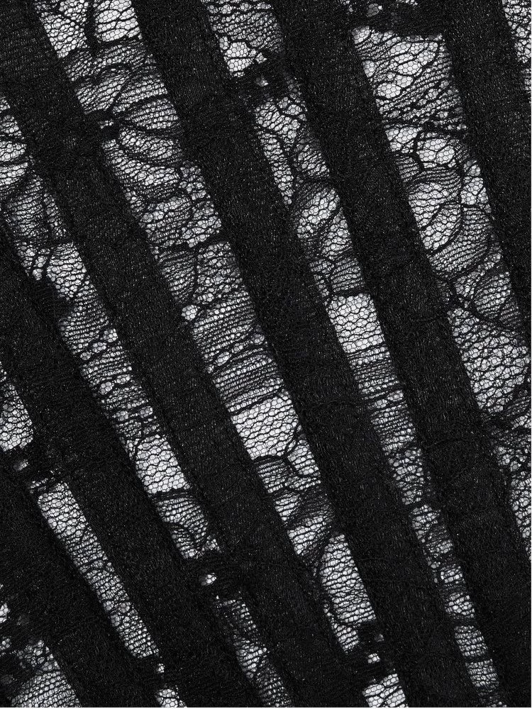 Das Schnürkorsett Malia Juliette Noire von Cadolle ist eine luxuriöse Wäsche aus echter französischer Spitze. Das ärmellose Korsett besteht aus zarter, schwarzer Blumenspitze. Das Korsett ist ungefüttert und daher transparent. Es hat einen seitlichen Reißverschluss, umlaufend alle paar cm eingearbeitete Stäbchen und wird auf der Rückseite über die gesamte Länge geschnürt.