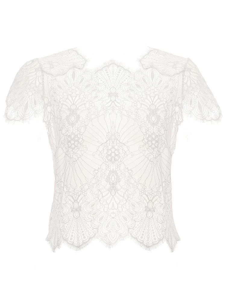 Das Kurzarm Top von Prelude Milano ist Spitzenwäsche Made in Europe. Das edle Teil besteht aus floraler Eye-Lash-Spitze. Das Top ist nicht gefüttert und somit leicht transparent.