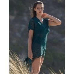 Diese Strand Tunika der französischen Luxus Beachwear Marke Pain de Sucre ist in weiß (blanc), schwarz, rot, fuchsia oder petrol-grün zu haben. Das Material ist eine elastische Spitze und nicht gefüttert – daher teiltransparent. Diese Tunika kann als Beachwear, kurzes Kleid oder längere Bluse getragen werden.