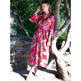 Morgenmantel Flowers No. 2 fuchsia grün von Chiara Fiorini