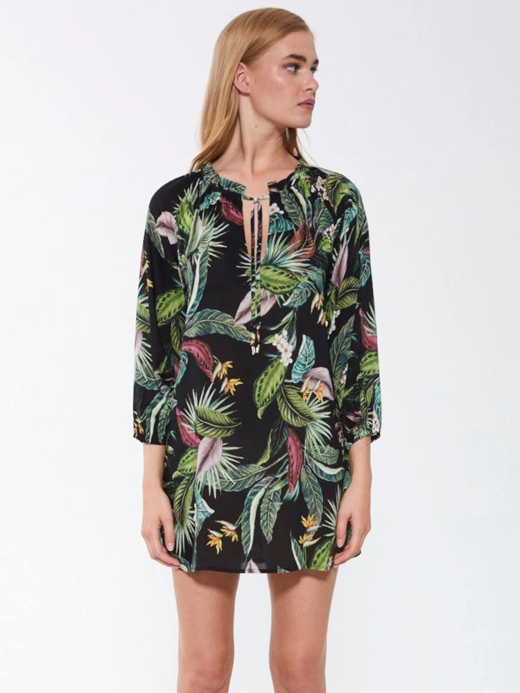 Tunika Exotic Leaves Fürstenberg schwarz grün