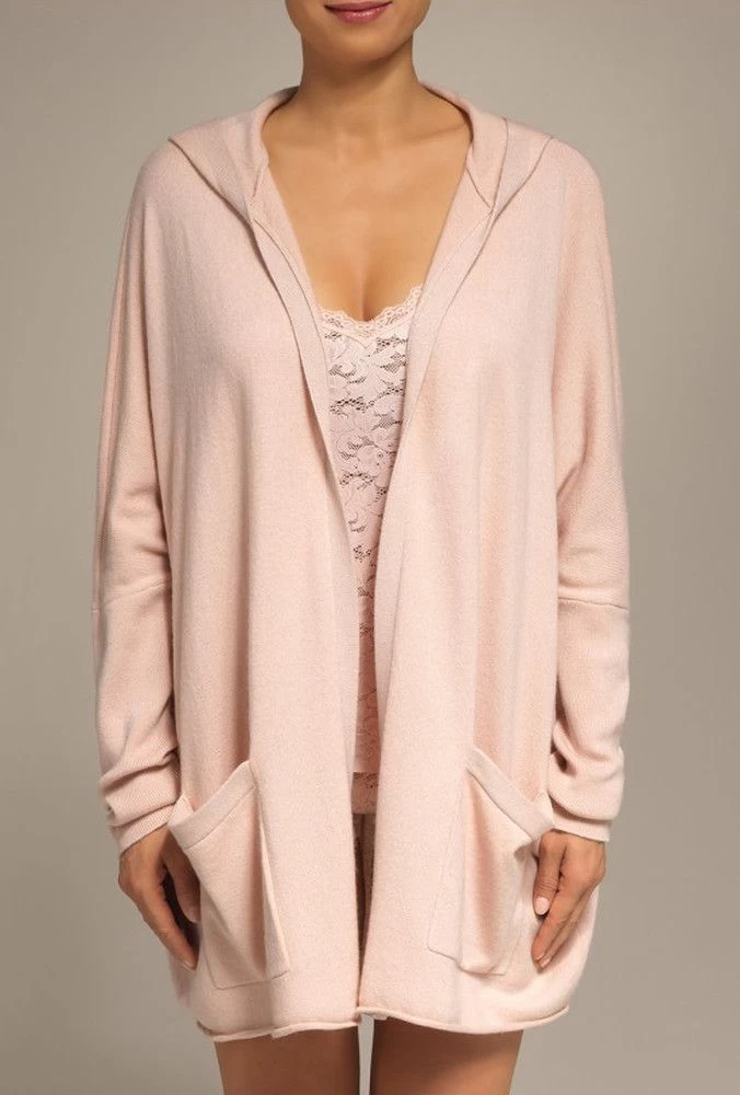 Der Wolle Kaschmir Kapuzen-Cardigan Grace 96 von Pain de Sucre Suggest ist aus einem traumhaften Wintermaterial gefertigt. Die oversized geschnittene Strickjacke mit Kapuze besteht aus einer Mischung von Wolle und Viscose mit dem Plus an Kaschmir. Sie ist in den Farben petrol-grün oder kiesel-grau erhältlich. Aus dieser Kollektion gibt es separat erhältlich noch weitere Teile, die sich wunderbar kombinieren lassen.